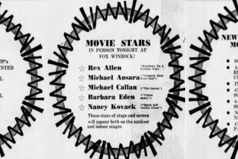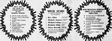 The highly anticipated new Fox Winrock Theater would open its doors on May 28, 1963 with a Grand Opening and Gala Benefit Event. Below are some of the advertised festivities, including movie stars of the time, music, and airing of events on local TV.