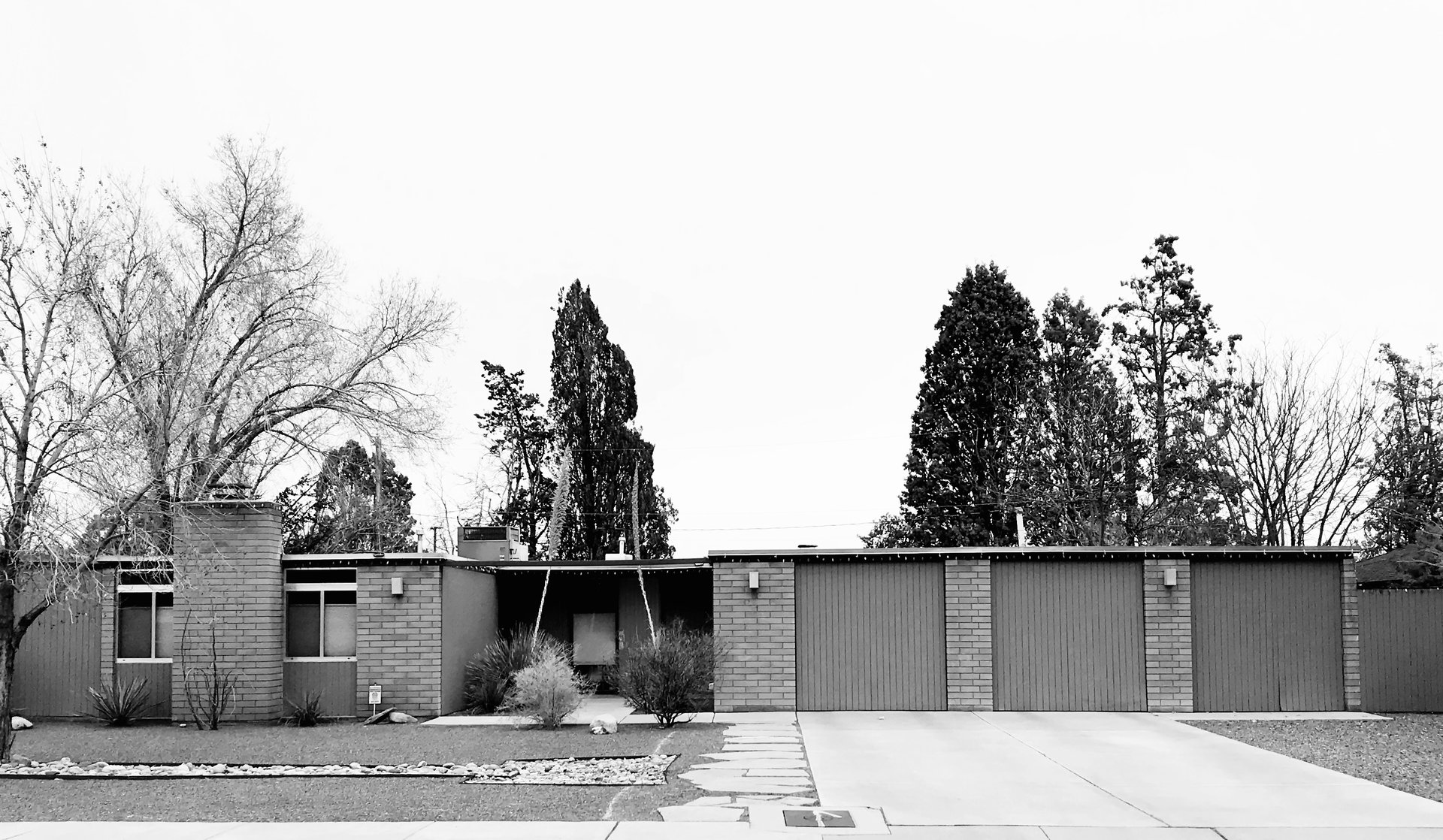 Dekker’s home shares its quiet beauty with iconic modernist houses, like those crafted by Ludwig Mies van der Rohe. The low, simple roofline contributes to a box-like silhouette—striking in its understated elegance and clearly modern among the more traditional Southwestern architecture of Albuquerque.