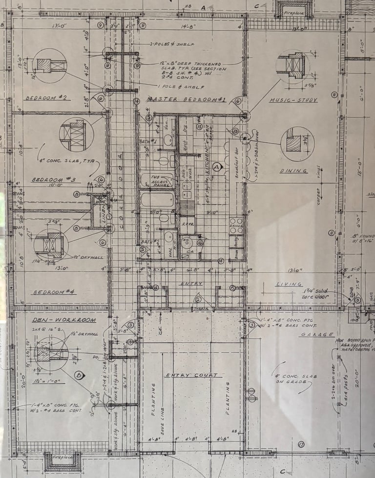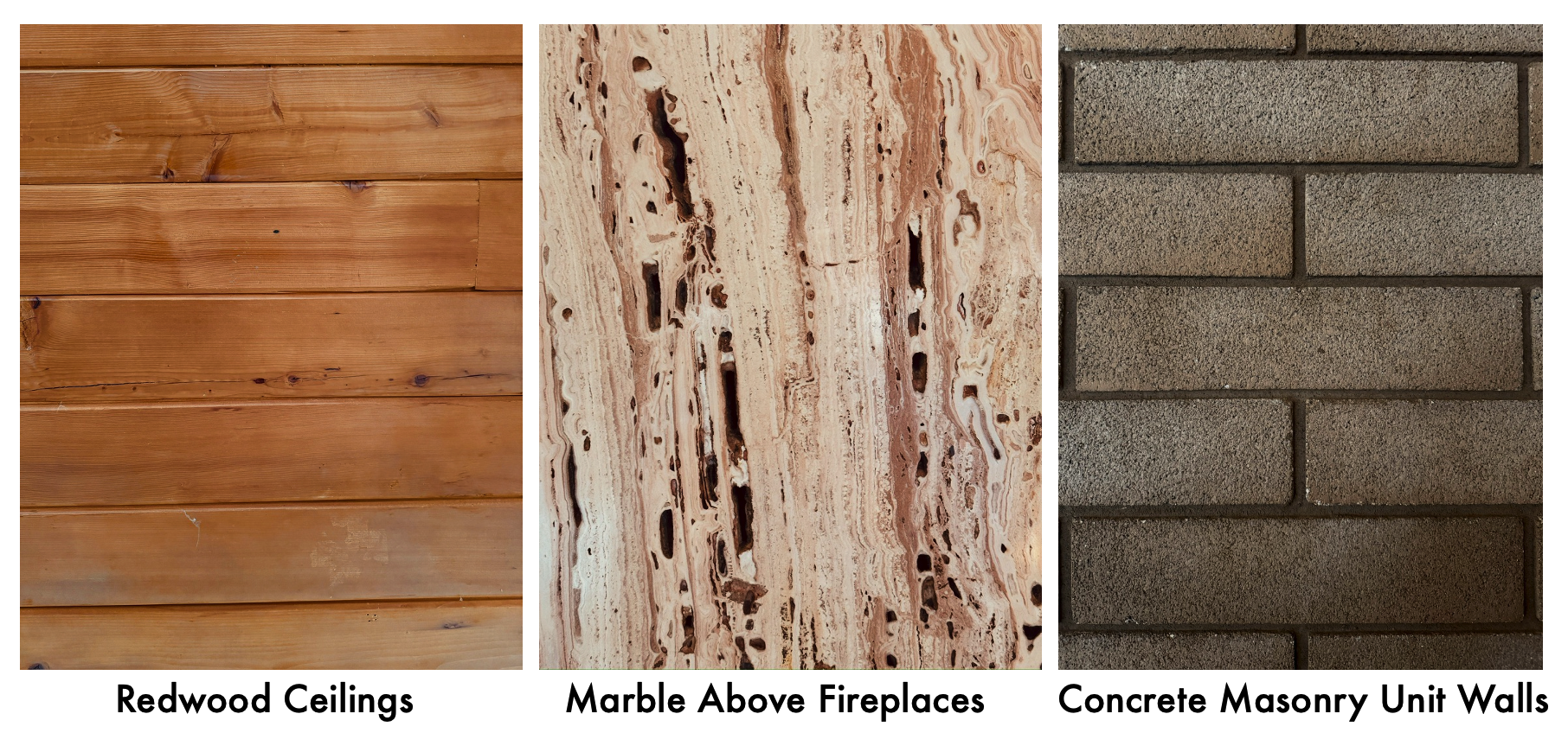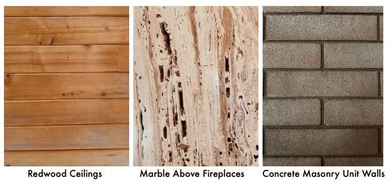 Masonry walls: Dekker chose masonry for both durability and aesthetic reasons, a rare material in homes of the era.