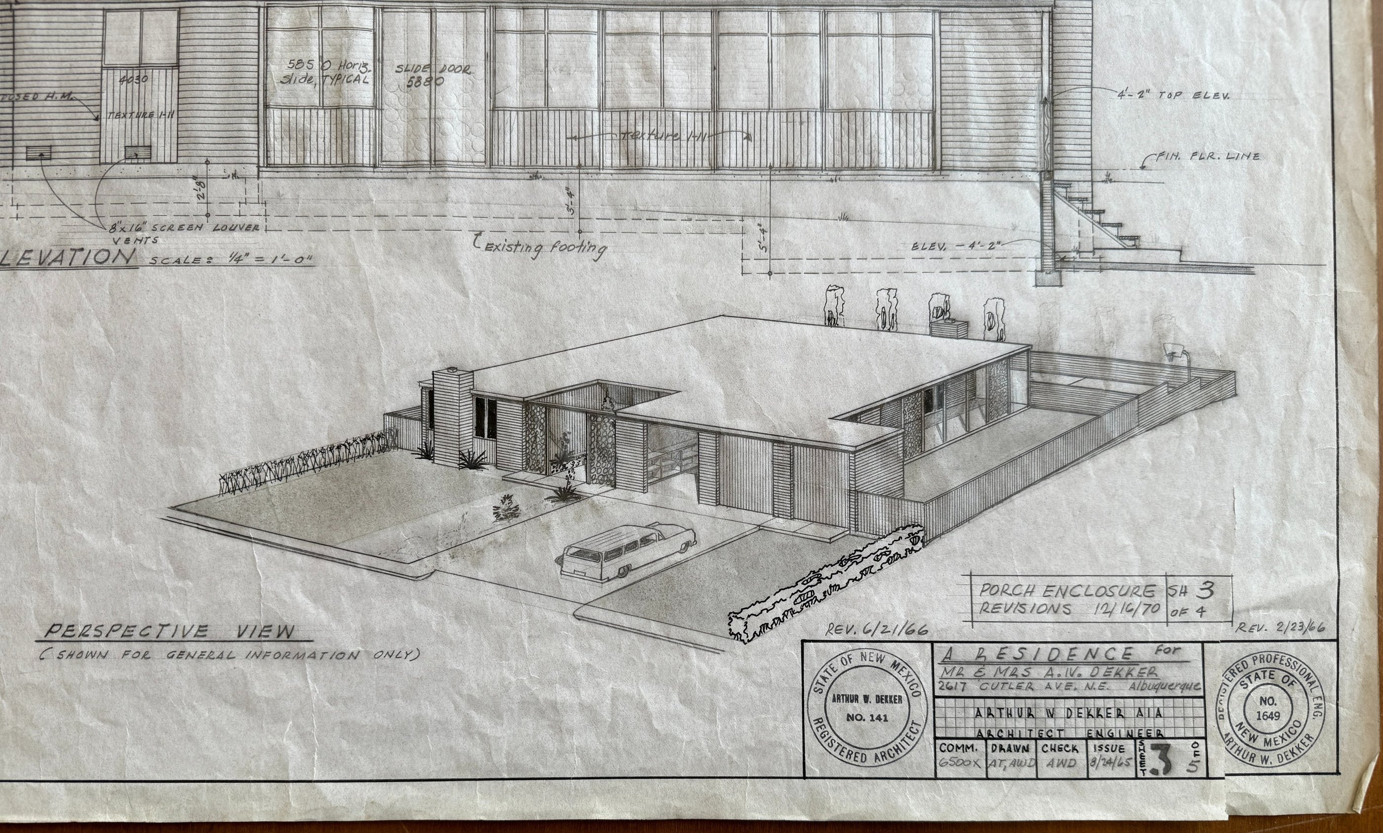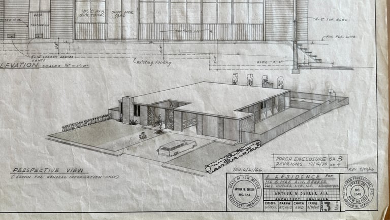 When Dekker built his house in 1965, Albuquerque was booming, fueled by defense contracts and population growth. The region’s economic surge meant new neighborhoods sprung up rapidly, especially near military bases. Dekker’s firm thrived in this atmosphere, designing high-end homes for the city’s growing professional class while other developers handled the sprawling suburbs.