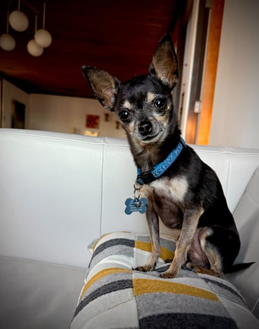 James shares his home with his 4-lb chihuahua, Javi, who takes his docent responsibilities seriously and also has taken to napping with guests who stay in the Dekker House.
